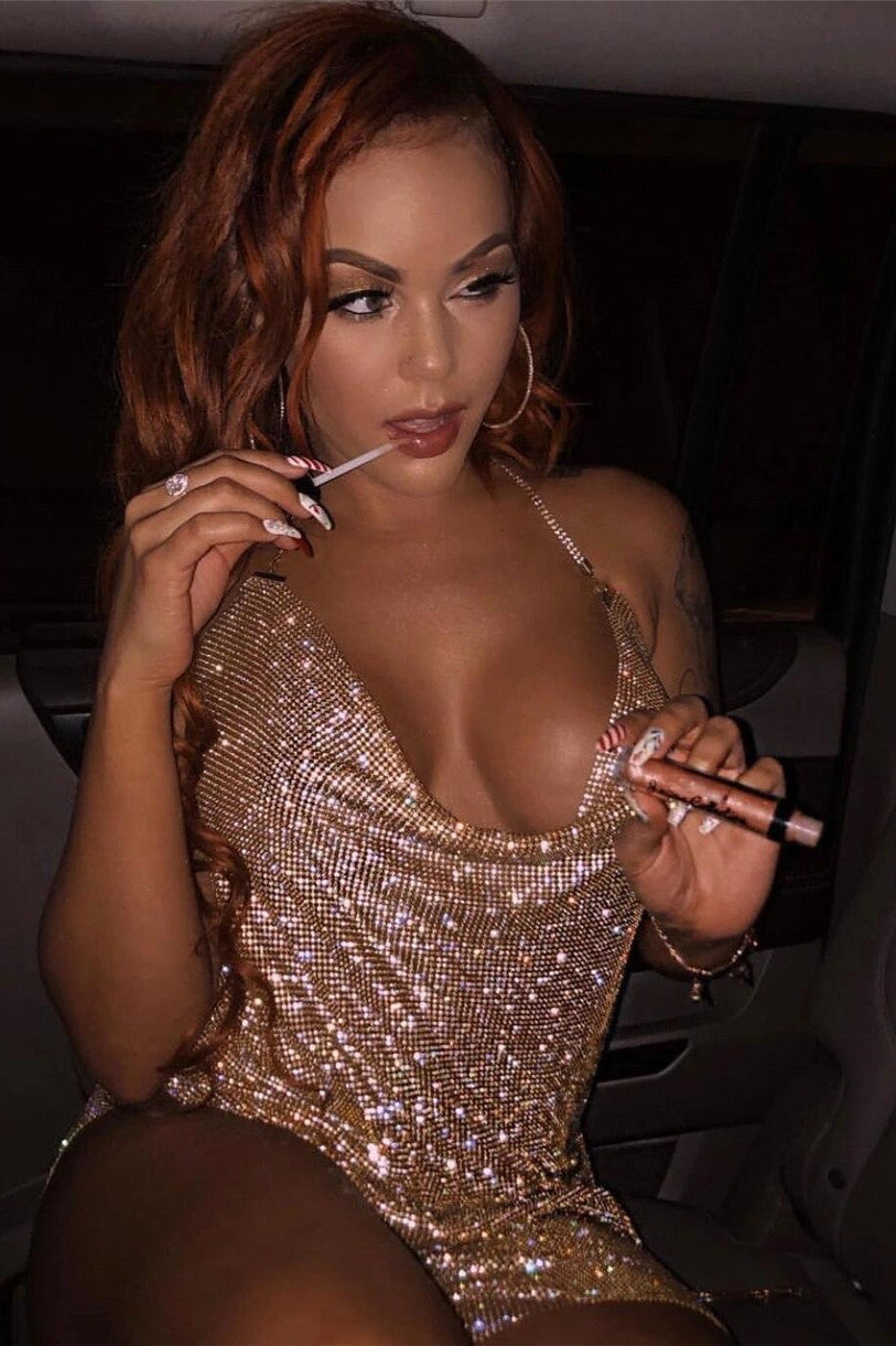 Shine your way through the night in this gorgeous sexy crystal mesh sequin dress.  Featuring criss-cross adjustable spaghetti straps, fully lined body and a v-neck cowl neckline. Perfect for festive parties and layered under a faux fur coat!